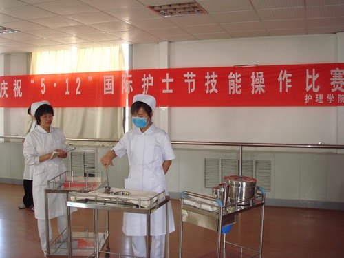 深入开展学习实践科学发展观活动,全面提高教学质量、增强学生就业实力。在“5·12”国际护士节即将到来之际,护理学院护理操作技能比赛于2009年5月5日下午2:00,在济宁校区护理专业实验室拉开了帷幕。护理学院党总支书记张振中、各教研室主任和全体辅导员老师出席了开幕仪式。