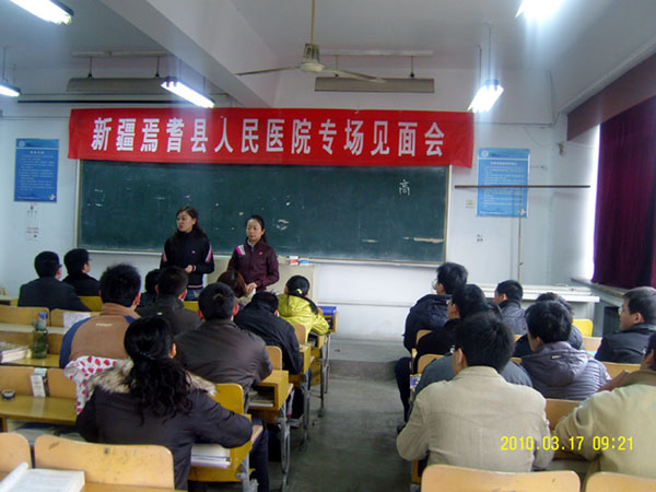 为进一步拓宽毕业生就业渠道,搭建信息交流互选平台,促进我校毕业生顺利实现就业,学生处就业指导中心于2010年3月16—17日分别邀请淄博矿业集团中心医院、山东鲁抗医药股份有限公司、新疆焉耆县人民医院等三家单位来校举办现场招聘会。三家单位为2010届毕业生提供就业岗位80余个,招聘专业主要涉及临床医学、护理学、检验医学、药学、市场营销等。400多名毕业生分别参加了见面会,并投递了简历。经过初选,有97人通过了笔试、面试。
