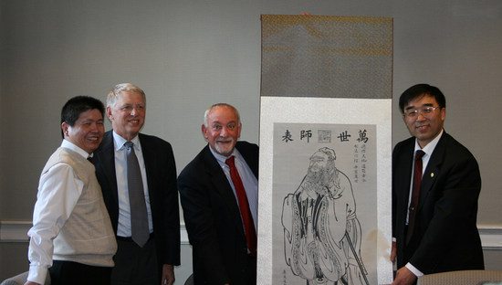 图五 白波院长(右一)向北卡罗来纳大学教堂山分校执行副校长Ronald博士(右二)