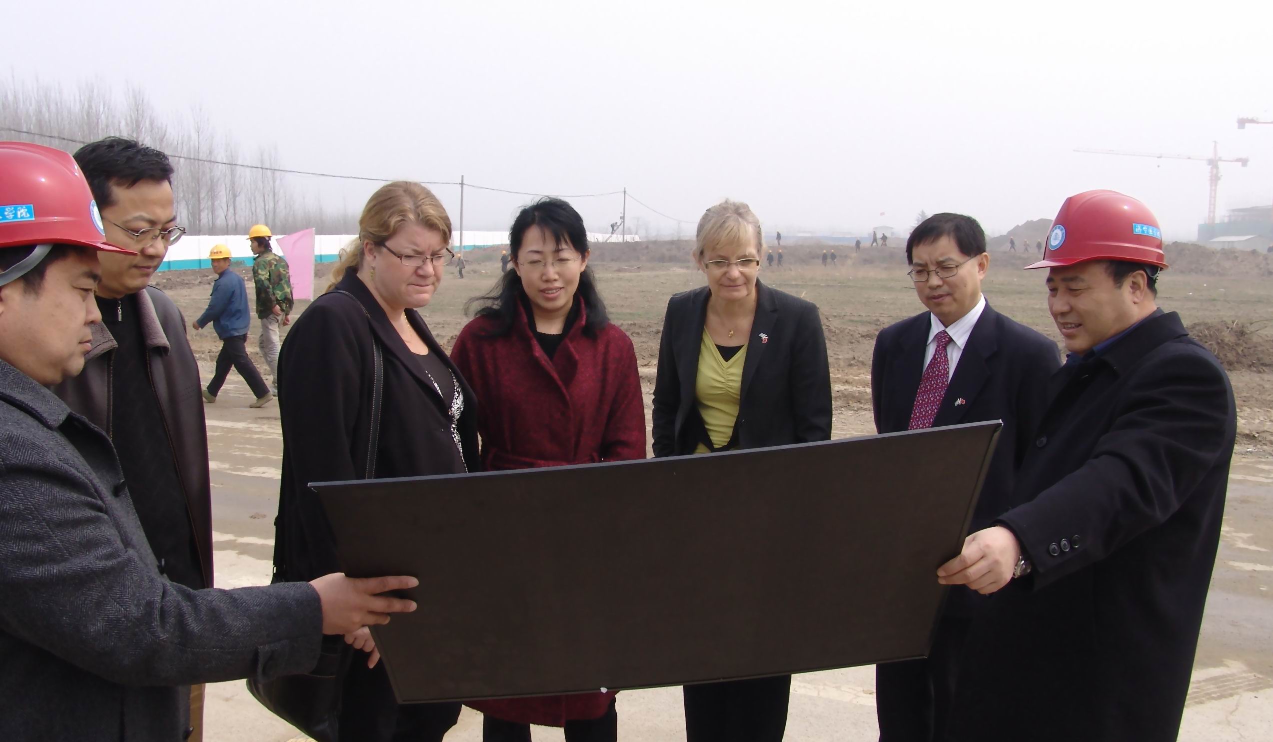 在校区迁建指挥部,姜继玉向客人介绍了校区总体规划、设计理念和建设目标:秉承天圆地方、天人合一、天水一色、围合的思想,突出孔孟文化、运河文化和医学特色,通过“高起点规划、高品位设计、高标准要求、高质量建设、高速度推进”,把新校区建成济宁市的重点城市名片和北湖生态新城靓丽的风景线。