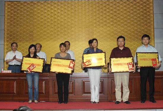 会议由高哲学宣读《济宁医学院关于表彰2009年度招生工作先进集体和先进个人的决定》,出席会议的校领导向获得2009年度招生工作的先进集体和先进个人颁奖。临床学院、护理学院、精神卫生学院、医学检验系、外语教学部分别被评为2009年招生工作先进集体;丁林等26名同志被评为招生工作先进个人。