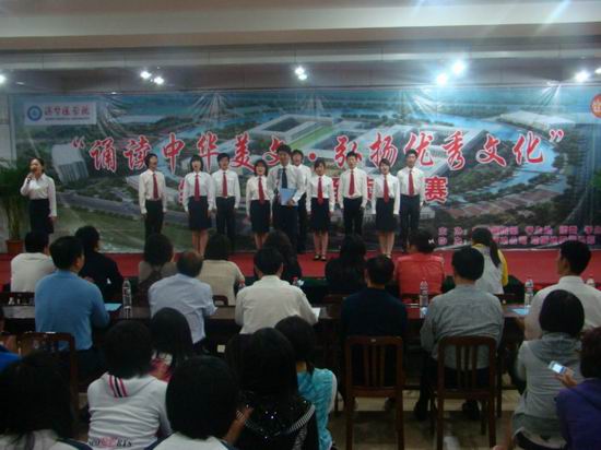 据悉,本次诵读比赛旨在推进全民读书活动和学习型校园建设,引导广大师生多读书、读好书。通过诵读中华经典作品,充分展现了我校师生良好的精神风貌和丰厚的文化底蕴。同时,为在大学生中弘扬中华民族优秀文化和传统美德,增强民族自豪感和文化自信心,增进爱党爱国爱社会主义情感,推进社会主义核心价值体系建设,创建和谐文明校园营造了浓厚的校园文化氛围。
