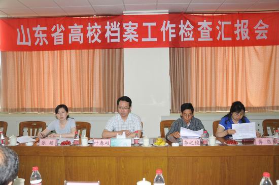 学校档案馆馆长王洪恩向专家组汇报了我校档案管理及自查情况。汇报包括学校概况、学校档案工作情况、档案工作存在的问题及下步工作打算、自评得分情况等四个部分。