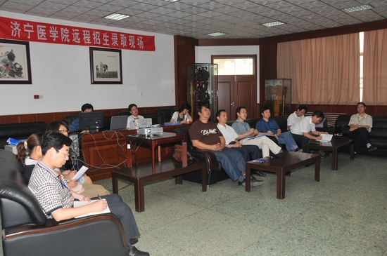 在招生录取现场,教务处处长司传平详细汇报了我校今年在各省市、自治区招生录取工作的进展情况,就山东省第一、二志愿的投档及录取情况作了重点汇报。
