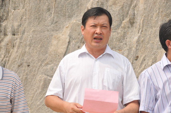 随后,白波与杨彩云共同揭开披挂在泰山石上的红彩,现场顿时掌声雷动,鞭炮齐鸣。