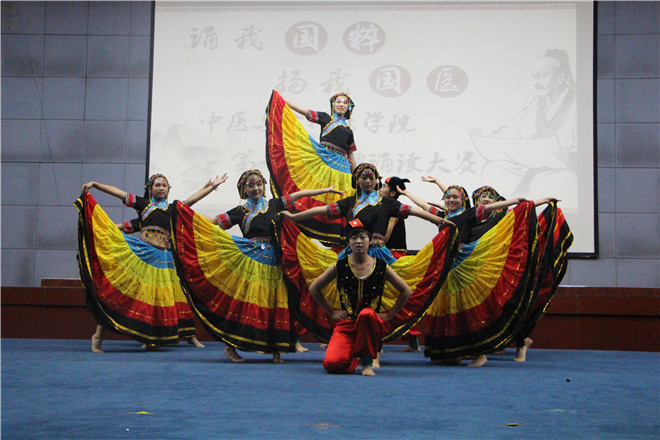 在开场的古典舞《雨中花》之后,中医与全科医学院党总支副书记王凌波致开幕辞,拉开了比赛的帷幕。本次比赛分为两部分,首先进行的是“经典在我心”的主题演讲。各参赛班级推荐的8位优秀选手结合自己的学习,阐述了对中医经典的理解,精彩的演讲博得了在场师生的阵阵掌声。特邀嘉宾济宁中西医结合医院办公室主任、中医临床专家王永,中医教研室张丽、孙闵老师分别对选手表现作了精彩点评。在第二部分的知识竞答环节中, 2013级和2014级学生分别组成伤寒队和内经队参加决赛,经过激烈角逐,最后评选出一、二、三等奖和优秀组织奖。各比赛环节中间,穿插演出了太极拳、太极扇、中国武术等具有中国传统文化特色的精彩文艺节目。最后在《七月火把节》的欢快舞蹈中圆满落下帷幕。