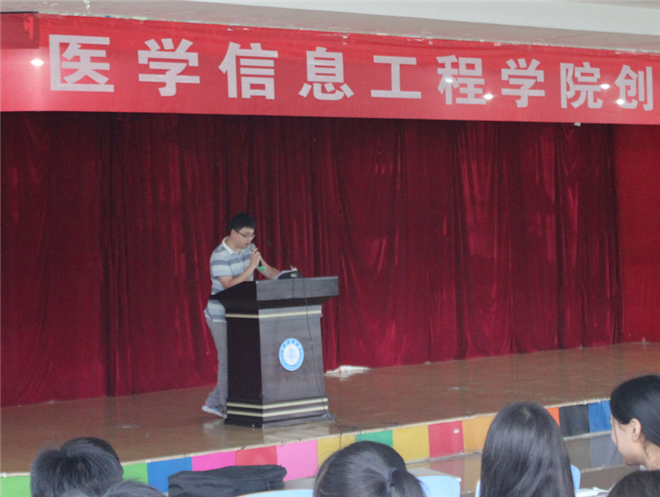 6月20日下午,医学信息工程学院在日照校区一楼报告厅举办了2016创业报告会。创业成绩突出的医学信息工程学院毕业生代表房健、刘斌作了创业报告。医学信息工程学院院长孔繁之、副院长王玉锋及学院师生400余人参加了报告会。