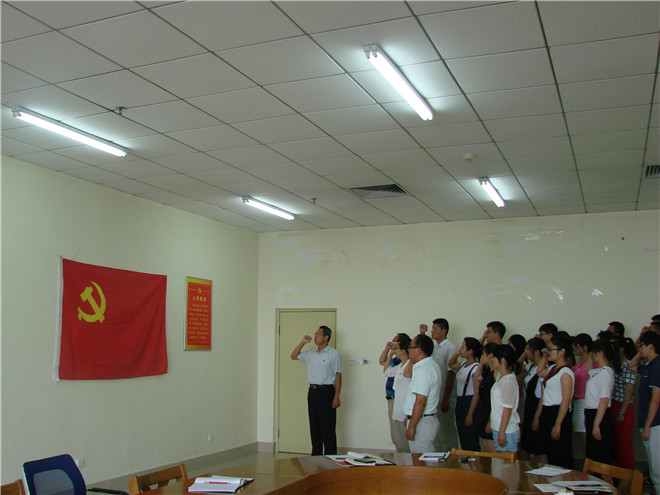 首先,全体党员佩戴党徽,庄严列队,在陈晓东的带领下,重温入党誓词。随后,陈晓东作了《回顾历史,感受辉煌,畅谈理想》的专题党课。他从“充满艰辛的新民主主义革命时期”、“艰难曲折的社会主义建设道路探索时期”、“波澜壮阔的改革开放新时期”等三个阶段,回顾了中国共产党95周年的光辉历程;总结了中国共产党带领全国各族人民取得的巨大成就和基本经验;围绕中华民族伟大复兴中国梦的宏伟目标畅谈理想,展望未来。最后,要求全体党员,继续按照党章和“四讲四有”要求,在工作、学习、生活中继续起模范带头作用,做合格党员。