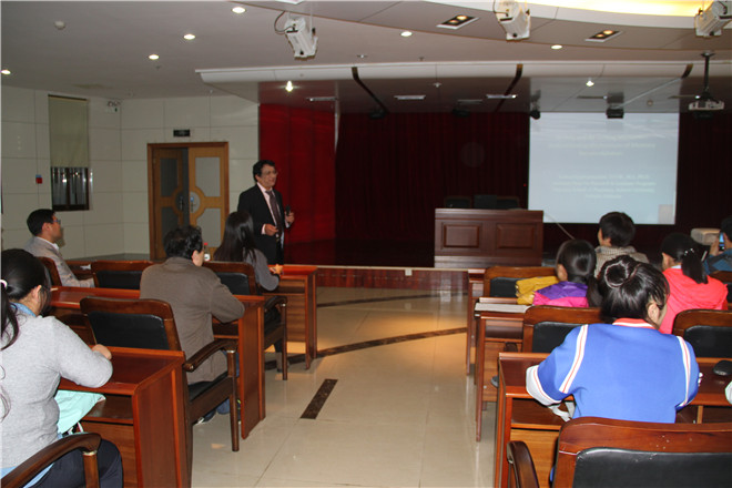 来访期间,Vishunu教授给药学院师生作了题为“Writing and Rewriting Memories: Understanding the Mechanisms of Memory Reconsolidation”的学术讲座。Vishunu教授用风趣幽默、浅明易懂的语言给大家介绍了学习记忆的突触机制,谷氨酸受体及蛋白的合成对记忆的强化及消除影响。药学院师生与Vishunu教授精彩互动,现场气氛热烈,不时响起阵阵掌声。