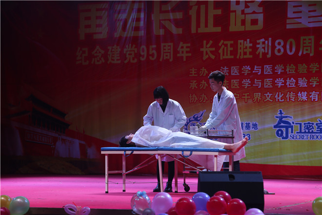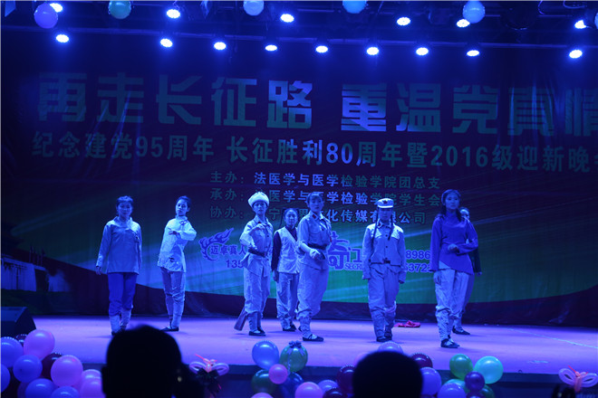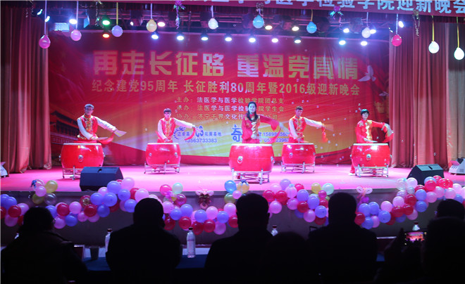 11月25日晚,法医学与医学检验学院庆祝建党95周年、长征胜利80周年暨2016级迎新晚会在大学生活动中心举办。学校副院长、法医学与医学检验学院院长、司法鉴定中心负责人崔文,学生工作处处长陈吉义,法医学与医学检验学院党总支书记郑红,副院长张凯及学院全体辅导员、2016级新生一起观看了演出。