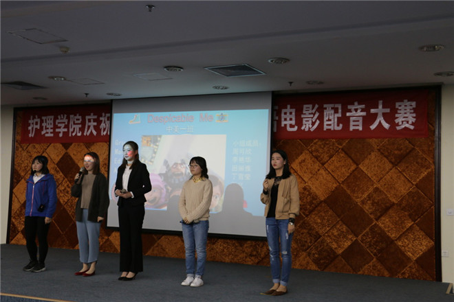 4月3日晚,护理学院在教学楼631报告厅举办英语电影配音大赛。本次比赛由护理学院教研室部分教师担任评委,护理学院团总支、学管办、年级辅导员和2015级、2016级中美班全体成员一同观看比赛。