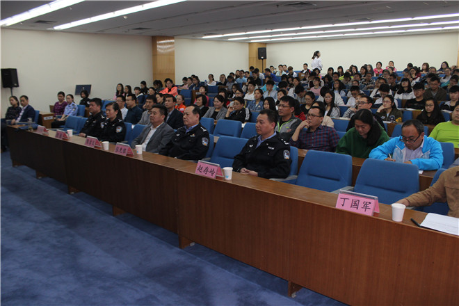在太白湖校区631报告厅,济宁市市公安局禁毒支队副支队长赵存岭作了《致青春——远离毒品》专题讲座。赵存岭以观看专题片、视频演示等详实案例,介绍了毒品危害、禁毒知识,为师生送上一堂生动易懂的法制课。讲座由学生工作处副处长丁国军主持。