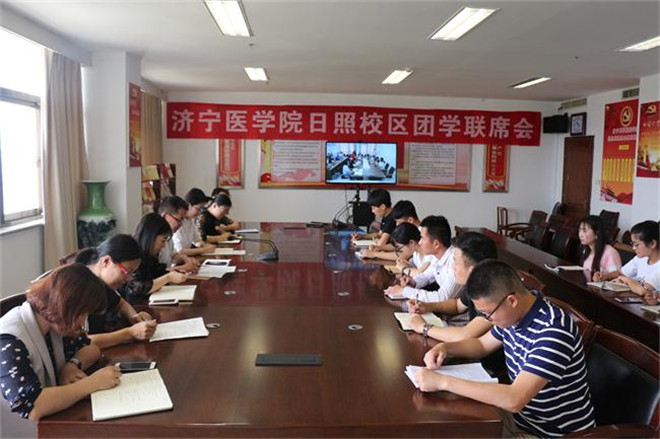 会议在太白湖校区和日照校区视频同步进行。各学院团总支负责人、校院两级学生会负责人参加会议。