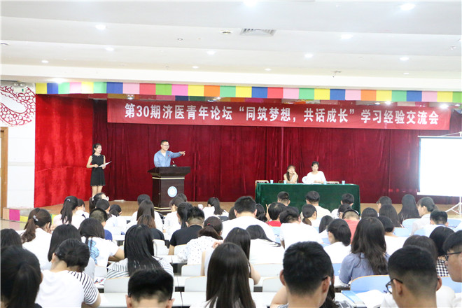 6月21日晚,由校团委主办,外国语学院承办的第30期济医青年论坛“同筑梦想,共话成长”学习经验交流会在日照校区办公楼一楼报告厅举行。来自日照校区各学院的优秀毕业生代表王锋锋、卢啸男、闵鹏翔、吴静文为同学们作了精彩报告。日照校区两百余名同学参加本次论坛。