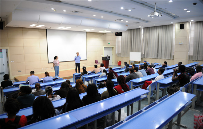9月6日开学第一周,国合部邀请济宁市公安局出入境管理分局、济宁市中区分局、附院管辖所属渔山派出所警官在附院留学生教室进行留学生法制、安全教育,宣传出入境法律法规,帮助2014级学生尽快熟悉适应济宁校区的新环境,并解答了留学生提出的问题。