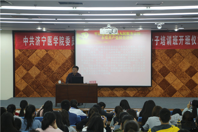 开班仪式结束后,精神卫生学院党总支书记费波同志为入党积极分子讲授了第一课:《中国共产党的宗旨》