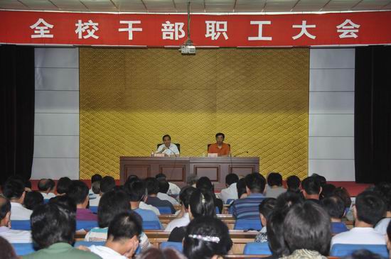 8月9日上午,我校召开全校干部职工大会。校领导武广华、白波、姜继玉、刘学景、杨志寅、高哲学、温杭东,