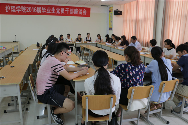 6月28日,护理学院在教学楼812室召开2016届毕业生党员、学生干部座谈会,护理学院党总支书记高鸿