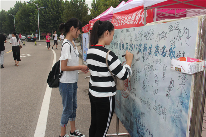 为做好今年的迎新工作,让新生高兴地别离父母,舒心地进入学校,安心地开始大学生活,学校制定了科学详细的工作方案,成立了迎新工作领导小组,专门召开迎新工作会议,对迎新各项工作进行周密部署,确保相关部门单位和人员服务到位。在济宁、日照两地火车站、汽车站设置6个接站点,千余名志愿者和迎新工作人员从早上7点至晚上10点不辞辛苦地迎接新生;在报到现场,每个学院都设置了党员示范岗,安排党员志愿者为新生服务;为方便家庭经济困难新生入学,学校开通“绿色通道”,推出资助政策和各项措施,确保每位新生顺利入学;学校还在报到现场安排了家长休息区及免费领水处,为新生和家长提供温馨的服务。