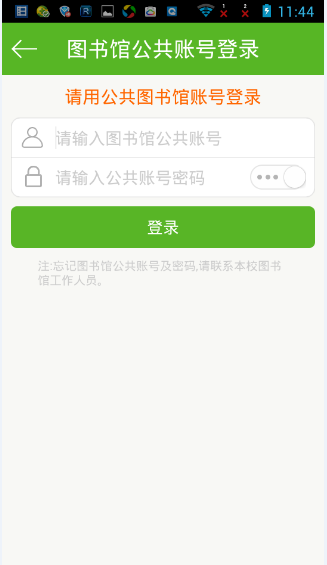 2、进入公共账号登录页面,请输入图书馆公共账号:whsduzx密码: 123,点击登录。