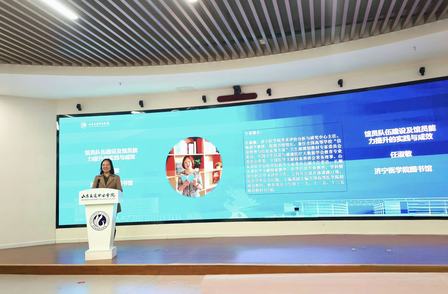 任淑敏教授以《馆员队伍建设及馆员能力提升的实践与成效—济宁医学院图书馆》为题目,详细介绍了我校图书馆近年来的强化馆员队伍建设、建设学术交流与培训机制,提升馆员能力,创新开展阅读推广服务、信息素养教育、学科情报服务等的实践经验及工作成效。报告结合任教授投身图情事业的经历,以如何建设馆员队伍、提升馆员能力与实现个人价值的实际案例为切入点,分享了宝贵经验和成效,使与会人员受益匪浅。