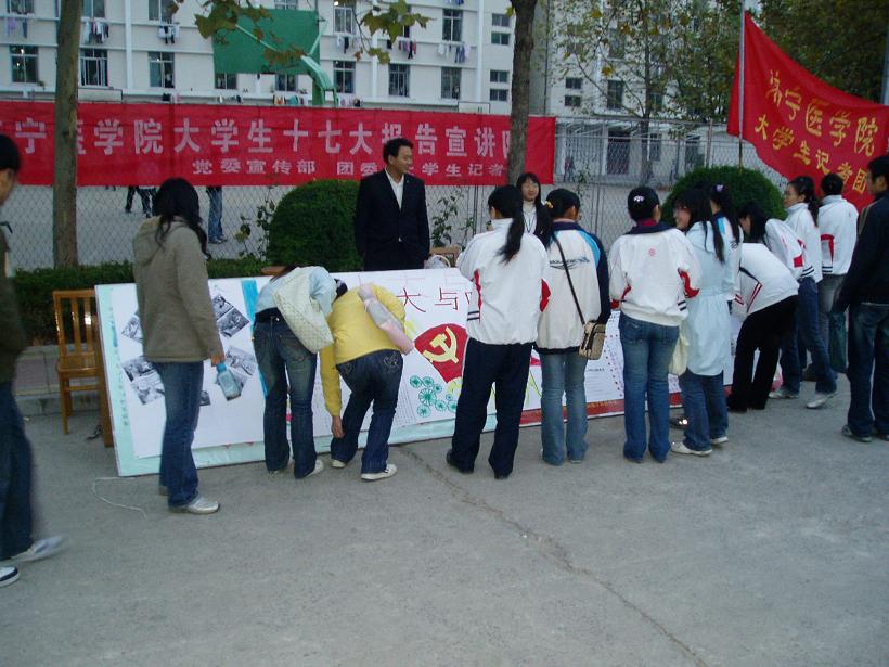 为深入贯彻学习十七大会议精神,近日,院团委积极响应上级号召,组织全院团员青年开展了形式多样的学习宣传活动,掀起了济宁医学院青年学生学习十七大精神的热潮。