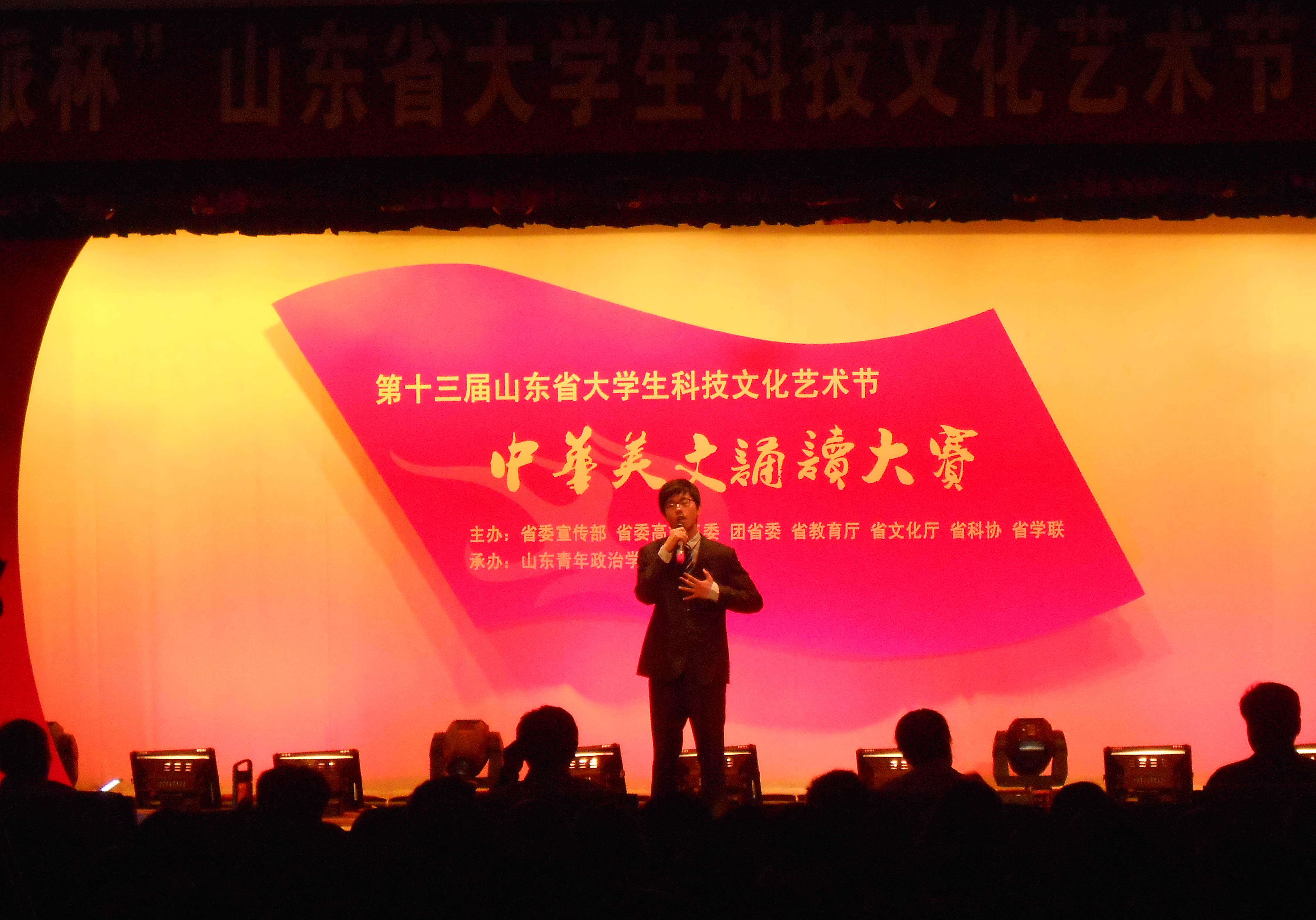 6月16日,由团省委联合省委宣传部、省委高校工委、教育厅、文化厅、省科协、省学联等单位主办,山东青年政治学院承办的第十三届山东省大学生科技文化艺术节——中华美文诵读大赛在大学生活动中心隆重举行。我校推荐选手赵猛同学参加并荣获三等奖。
