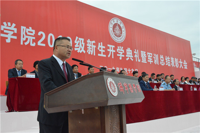 九月的太白湖畔,暄气初消,九月的黄海之滨,天高云淡。9月19日、20日,我校分别在太白湖校区、日照校区举行2019级新生开学典礼暨军训汇报表演。校党委书记高哲学,党委副书记、院长张成博,两校区承训部队首长,校党委委员、副院长赵敏,党委委员、纪委书记郭辰夫,党委委员、副院长兰迎春、于景科分别出席两校区典礼。典礼由赵敏主持。