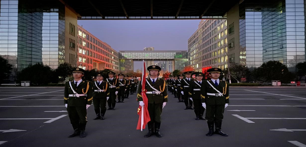 早上7时整,升旗活动正式开始。英姿飒爽的国旗护卫队员迈着铿锵有力的步伐将鲜艳的五星红旗护送进场。在第一缕晨曦的映照下,伴随高亢的国歌,鲜艳的五星红旗徐徐攀升、迎风飘扬,全体队员面向国旗庄严敬礼。