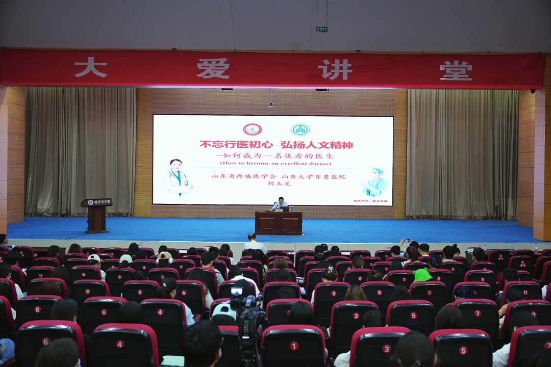 为深入开展学习贯彻习近平新时代中国特色社会主义思想主题教育,加强医学人文教育,助力医学生树立高尚医德,5月23日,山东省疼痛医学会会长、山东大学齐鲁医院刘玉光教授做客学校第六十三期大爱讲堂并作题为《不忘行医初心,弘扬医学精神》的报告。学校党委副书记张贤雷出席讲座并讲话。