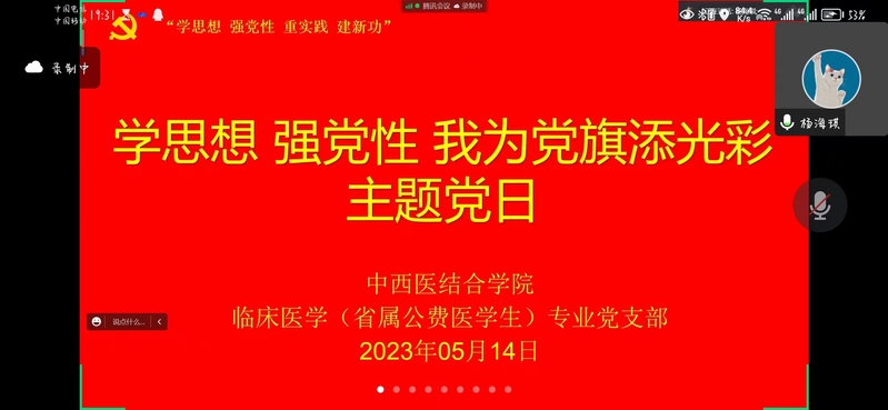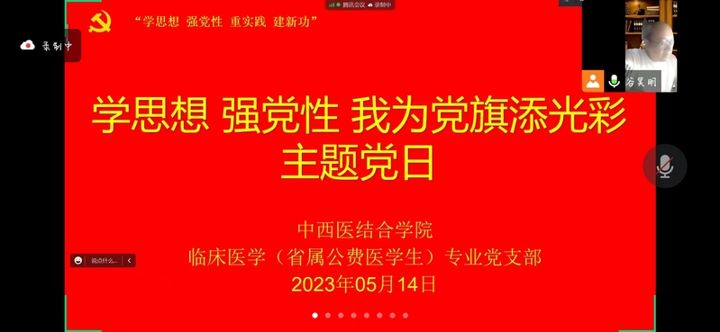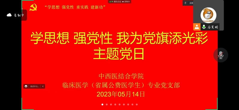为把学习贯彻习近平新时代中国特色社会主义思想主题教育引向深入,夯实坚定拥护“两个确立”、坚决做到“两个维护”的思想根基,5月14日,我院临床医学(省属公费医学生)专业党支部根据工作安排开展了“学思想 强党性 我为党旗添光彩”主题党日线上学习活动。活动由党支部书记谷昊明主持,支部全体党员参会。