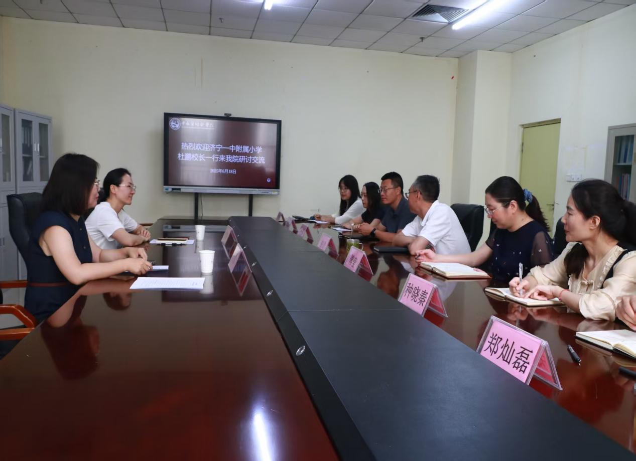 6月18日,我院党建共建单位济宁一中附小杜鹏副校长一行到访我院,学院班子成员出席会议。