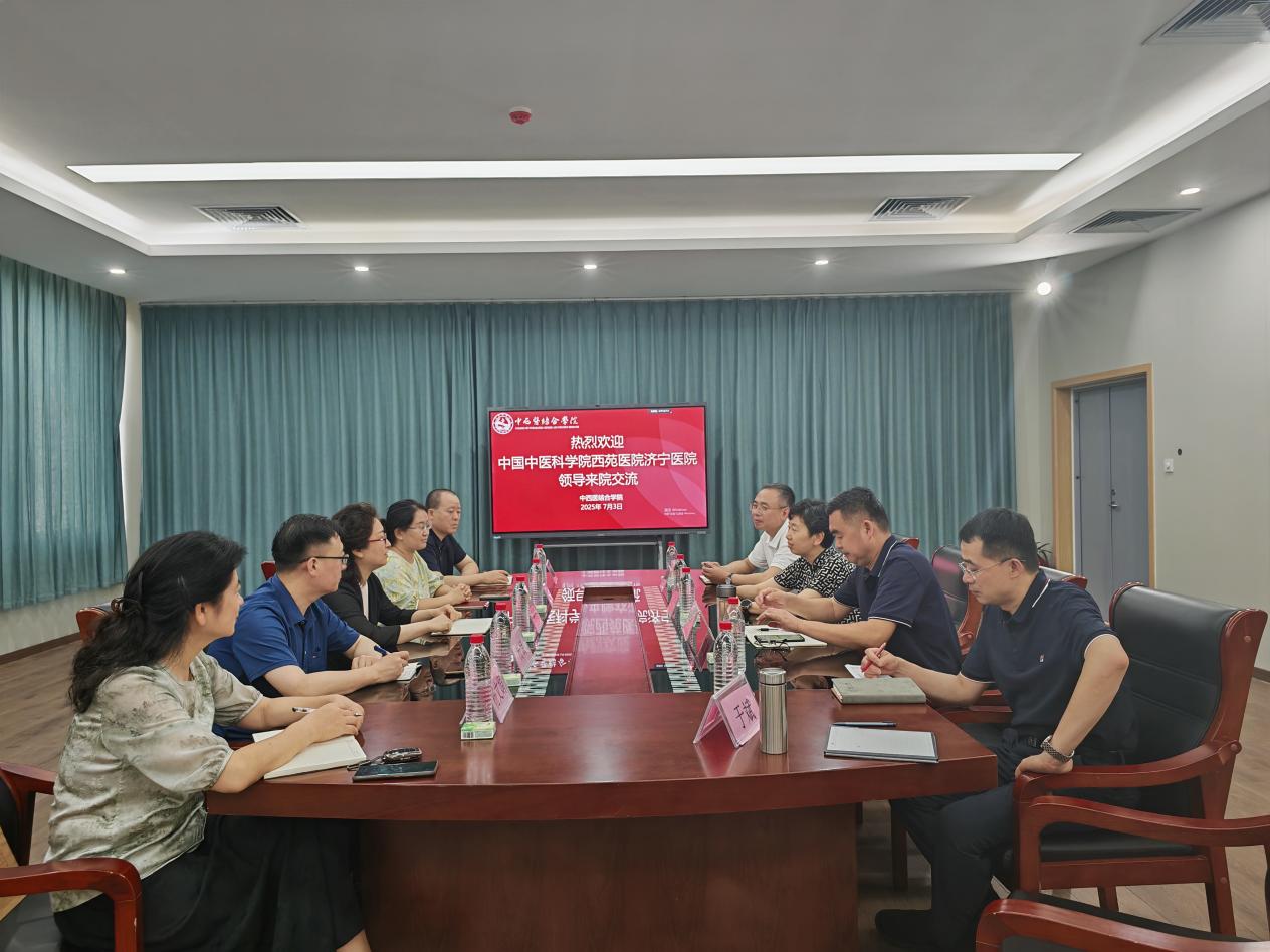 7月3日下午,中国中医科学院西苑医院济宁医院党委书记薛梅一行5人来我校交流,双方就深化校院合作、促进医教研协同发展进行深入探讨。学校党委委员、副院长王文姮出席活动并致辞,中西医结合学院党总支书记曲政主持座谈会。