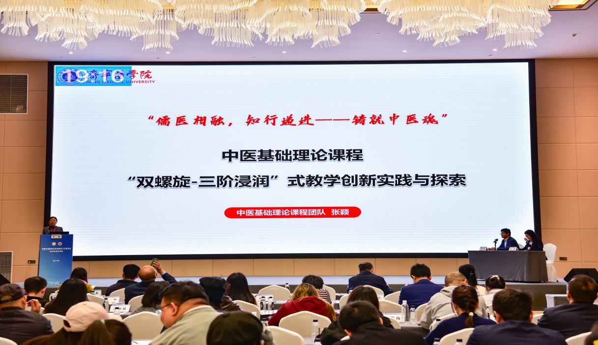 在大会“青年论坛”环节,我院教师张颖作题为《儒医相融,知行递进——中医基础理论课程“双螺旋-三阶浸润”式教学创新实践与探索》的交流发言。她系统阐释了学院以“儒医”文化为根基的育人理念,强调“儒医”不仅代表深厚的传统文化素养,更体现“仁心仁术、厚德济生”的价值追求。