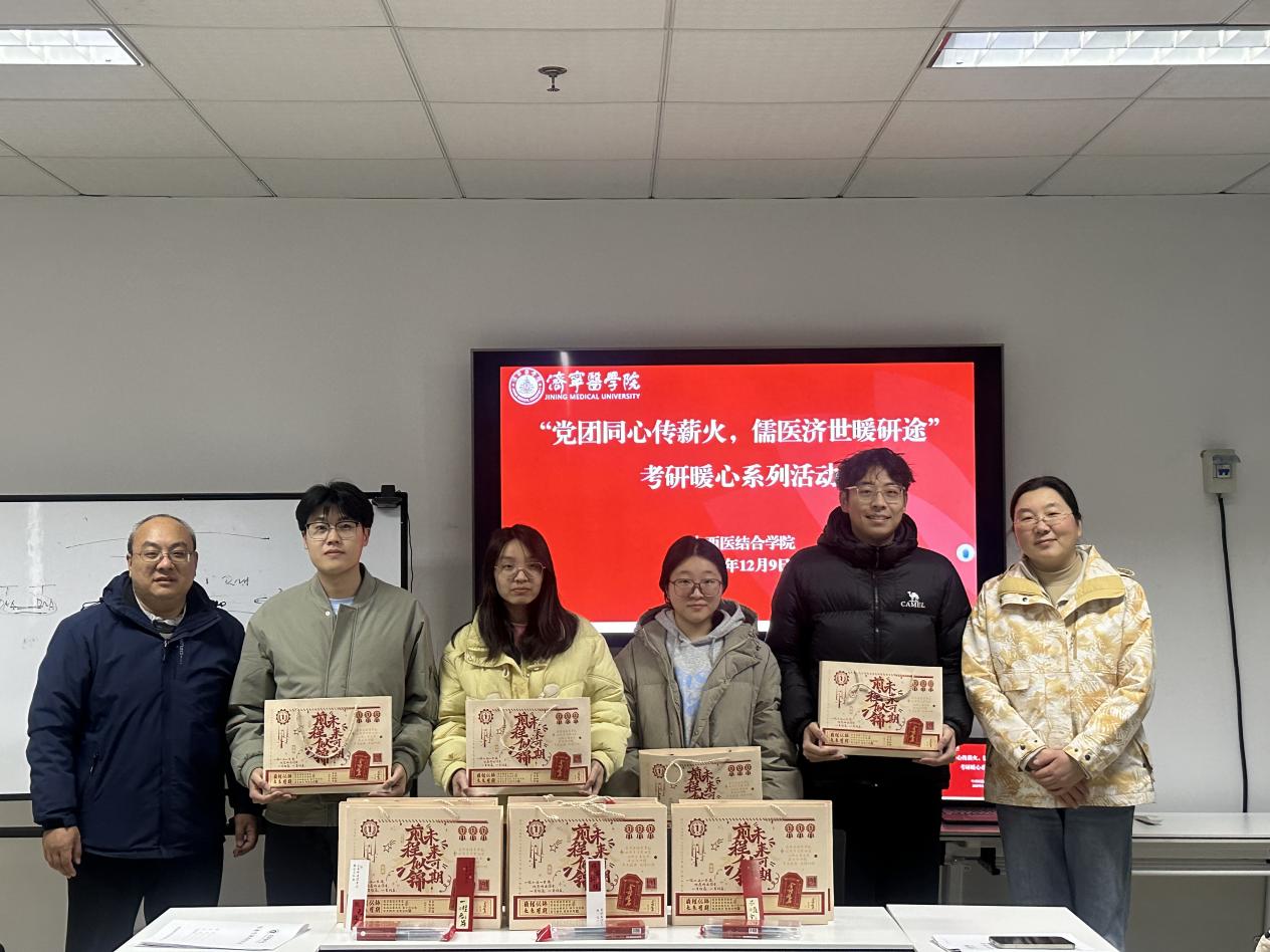 为深入贯彻落实立德树人根本任务,弘扬“儒医济世”的育人精神,近日中西医结合学院学生党支部与团总支联合组织开展以“党团同心传薪火,儒医济世暖研途”为主题的考研暖心系列行动。本次活动聚焦考研学子备考冲刺阶段的实际需求与心理状态,通过多层次、有温度的精准支持,为莘莘学子传递关怀、注入信心、保驾护航。